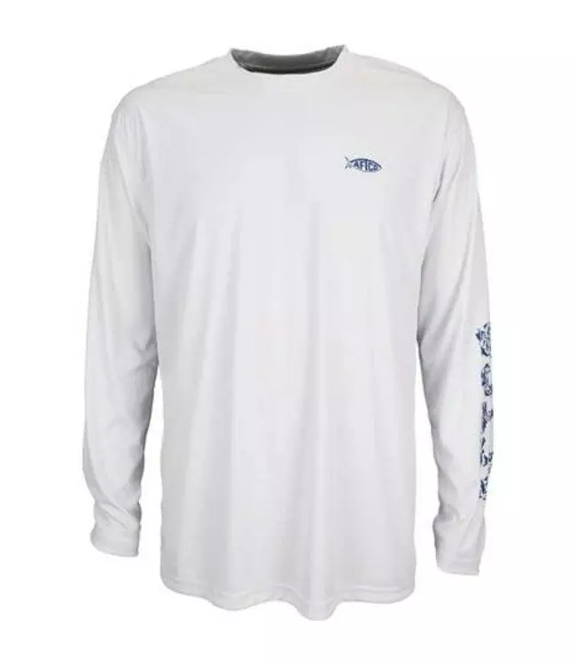 The AFTCO Jigfish UV protection long sleeve fishing shirt is one of the ultimate AFTCO shirts that protect from the harmful effects of the sun’s UV rays. This performance shirt is made of 100% polyester that features an AFTCO logo in bold text.