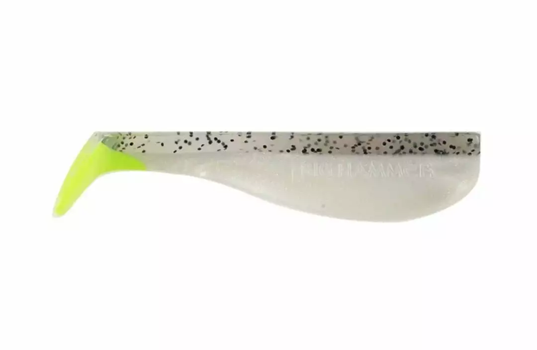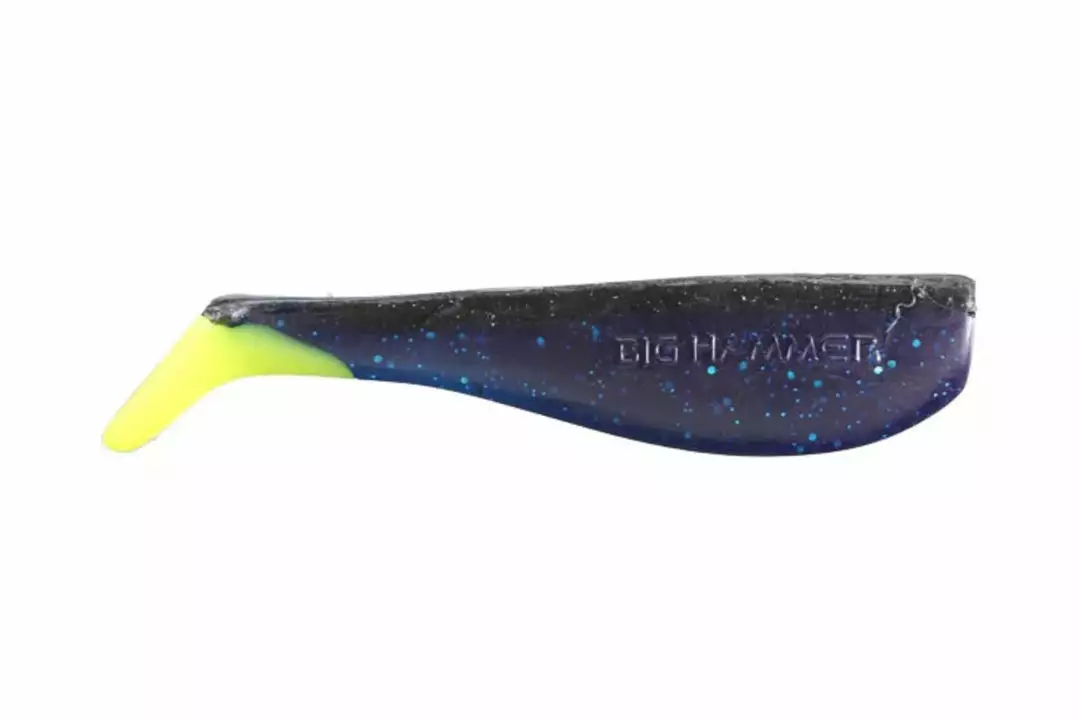 Big Hammer 5″ Swimbaits are in a class of their own. They have a square tail which creates a more erratic swimming action that entices a variety of fish to strike. The soft yet durable plastic allows multiple fish per bait for the less toothy variety. Rig it with a Big Hammer head and either slow wind it or burn it back. Can be fished in all depths of water depending on how heavy the jig head is or how long you let it sink before starting your retrieve. We suggest glueing the head to the plastic once rigged to keep the fish from pulling the body away from the head during short strikes. Using the Owner Stinger Harness can be an effective way to keep short bites at a minimum.