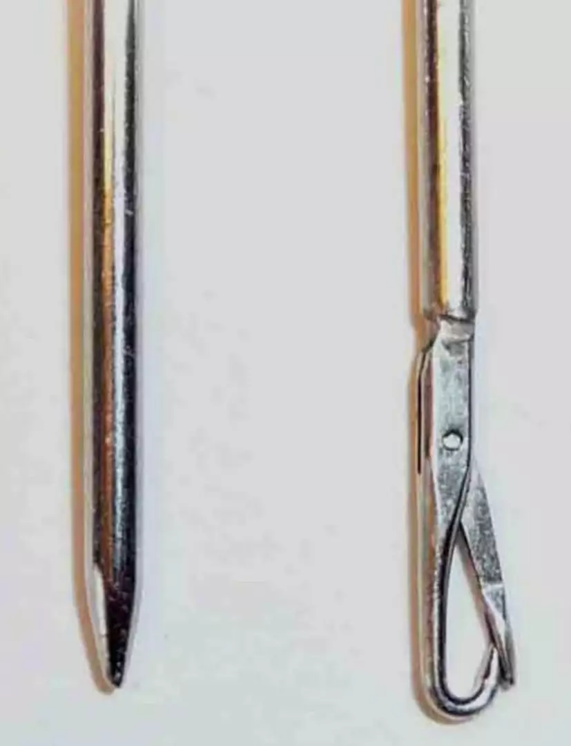 The DaHo Reverse Latch Threading Needles design came from Jerry Brown, a pioneer in the development of hollow spectra fishing lines. We appreciate his design as this product brings some unique features and ease of use characteristics that we try to provide in all our products. Below is a picture showing the ends of the new DaHo Reverse Latch Needle in detail: