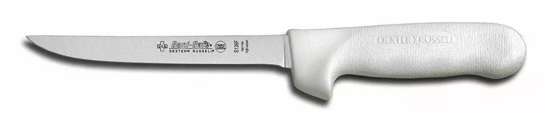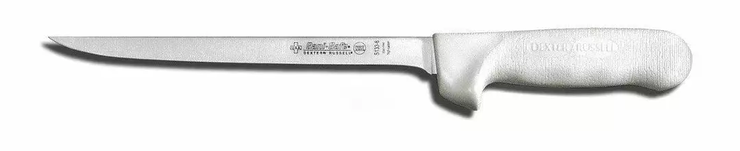 The Dexter Sani-Safe® product line offers the foremost standard for professional cutlery. A textured, slip-resistant, easy-to-clean polypropylene handle withstands both high and low temperatures. An impervious blade-to-handle seal provides the utmost in sanitary performance. Blades are manufactured from proprietary DEXSTEEL™ stain-free, high-carbon steel, are individually ground and honed, and excel in commercial use. Made in USA. Items marked with the NSF logo are NSF Certified.