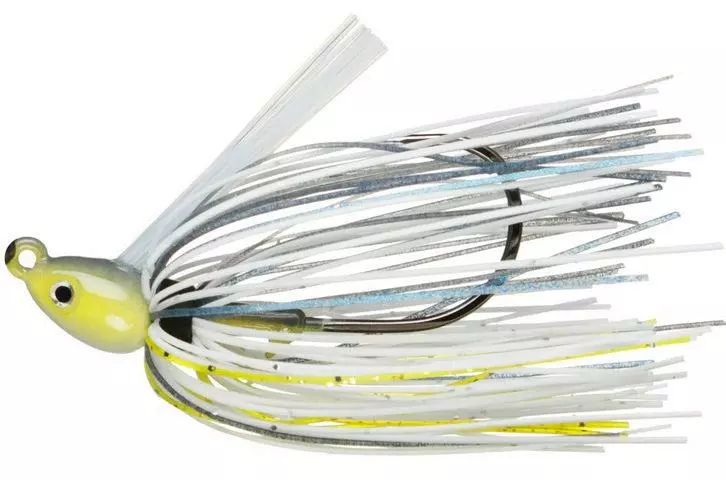 Dirty Jigs Swim Jigs are a Coosa River style swim jig features a 50 strand full skirt that gives this bait a more bulky profile for use in dirtier water or any time bass are targeting large shad or bream. There is no light wire hook here, the 5/0 3X Mustad hook is sharp enough to stick the fish with little effort but has all the strength of a heavy wire flipping hook. This jig features a bullet head for better movement through vegetation and 3-D eyes for a more realistic look. Available in 1/4oz – 4/0 Hook, 5/16oz – 5/0 Hook, 3/8oz – 5/0 Hook, and 1/2oz – 5/0 Hook.