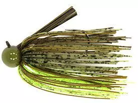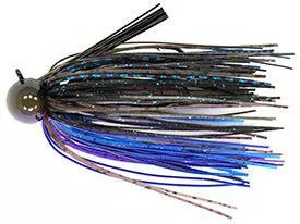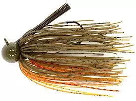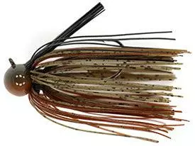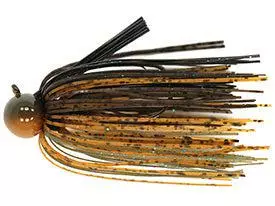 The football shaped head and flat eye hook of the Dirty Jigs Finesse Football jig allows the hook to ride upright at all times. This makes all the difference in getting those fish to the boat when fishing clear water with light line. Features a 60° flat eye Mustad ULTRA POINT 1X strong jig hook with new 4.3 Microsharp Point Technology, a large lead barb plastic trailer keeper, and skirt collar that accepts our double rattle system. Skirts come full length giving you the option of a full skirt or trim the front to achieve a slim spider cut profile.