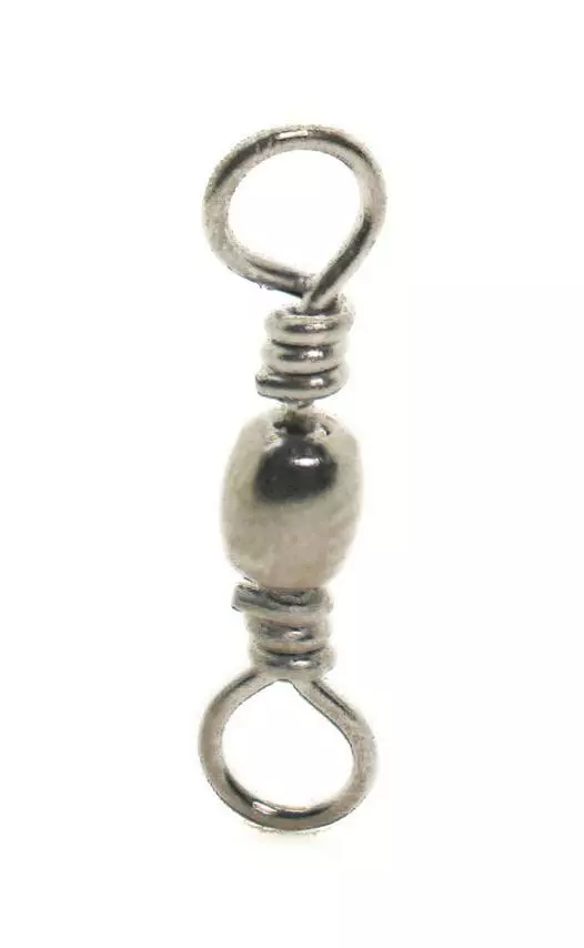 Designed to eliminate line twist and make a dependable and strong link between the main line and a leader. The Mustad Barrel Swivel is made from high quality materials and will not let you down. When choosing a swivel always go small. Pick a swivel, which will match the breaking strength of your line. This will give the best performance and presentation. When tying your fishing line to the swivel eye make sure to center the knot, as this will ensure the best rotation. Made from brass, for either saltwater or freshwater use. Black Nickel finish.