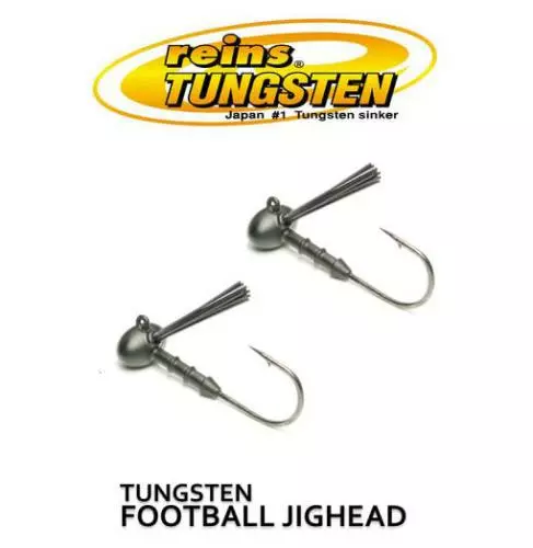 Japan’s Top Tungsten Company is now in the USA. Reins TG Football Jigheads allow you to fish smaller profiles without compromising weight as conditions dictate. Tungsten is 40% smaller than it’s lead counterpart and more dense, which translates into more sensitivity to subtle bites.