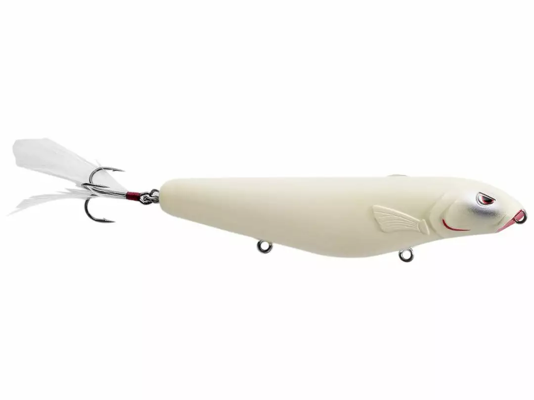 Not only is the Fat Papa Walker slightly bigger than standard walk-the-dog topwaters, but unlike its cigar-shaped predecessors, it features a distinctly distended belly that pushes massive amounts of water. It enables anyone to create a wide “glide” without much effort. As a result, expert topwater anglers will be able to make it perform all sorts of fish-tempting tricks, while even rank beginners will get this baitfish imitator to work properly with minimal effort.
