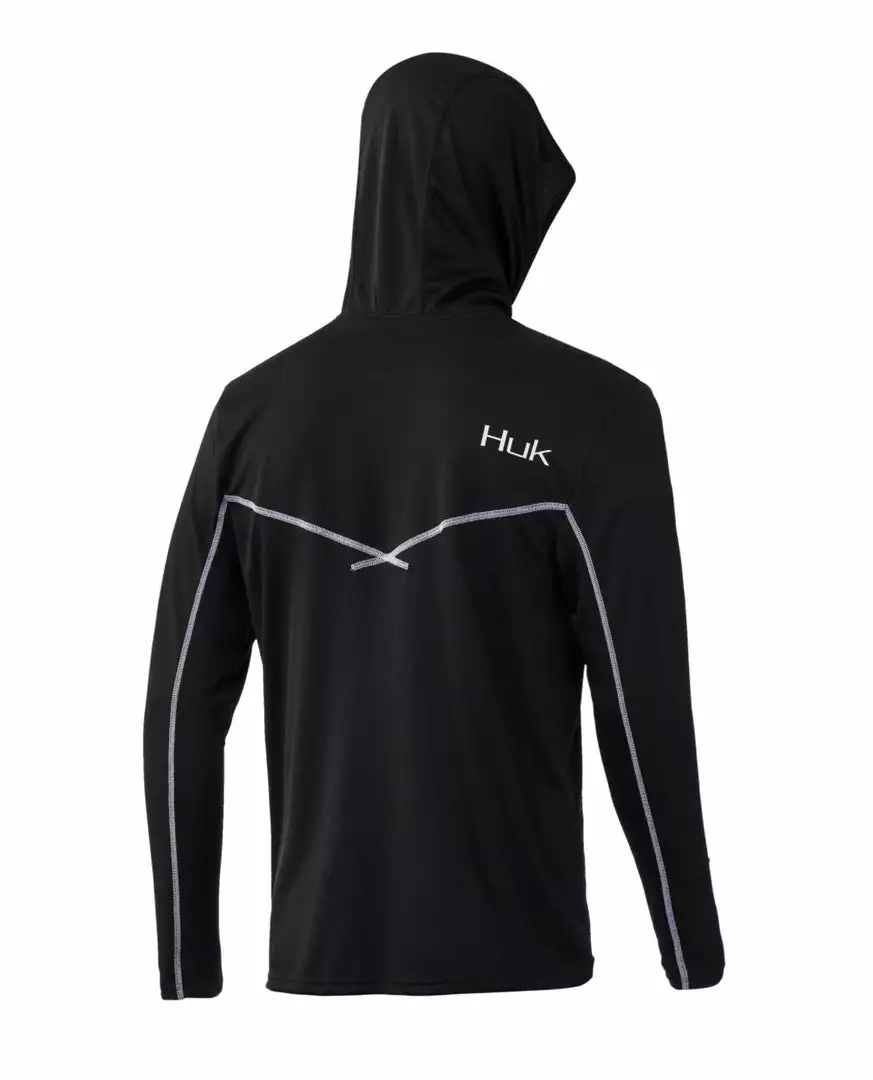 The Huk ICON X Hoodie is the most technically advanced performance fishing shirt designed for anglers. Comprised of Double Pony Polyester, this synthetic material spreads moisture over a larger surface area creating a rapid drying effect that cools after coming into contact with perspiration. The synthetic fibers allow air to pass through the shirt and contain a hydrophobic coating that transports sweat to drier areas, away from the skin.