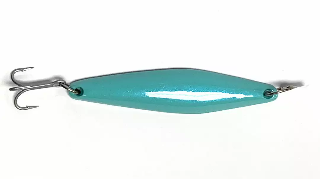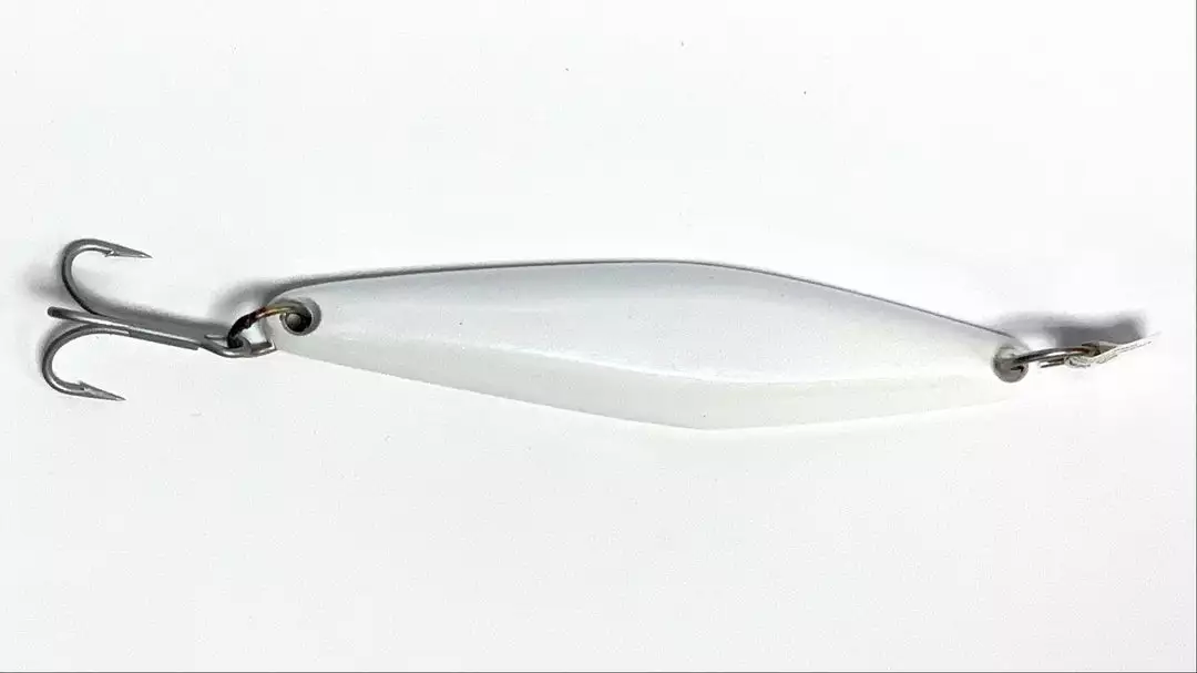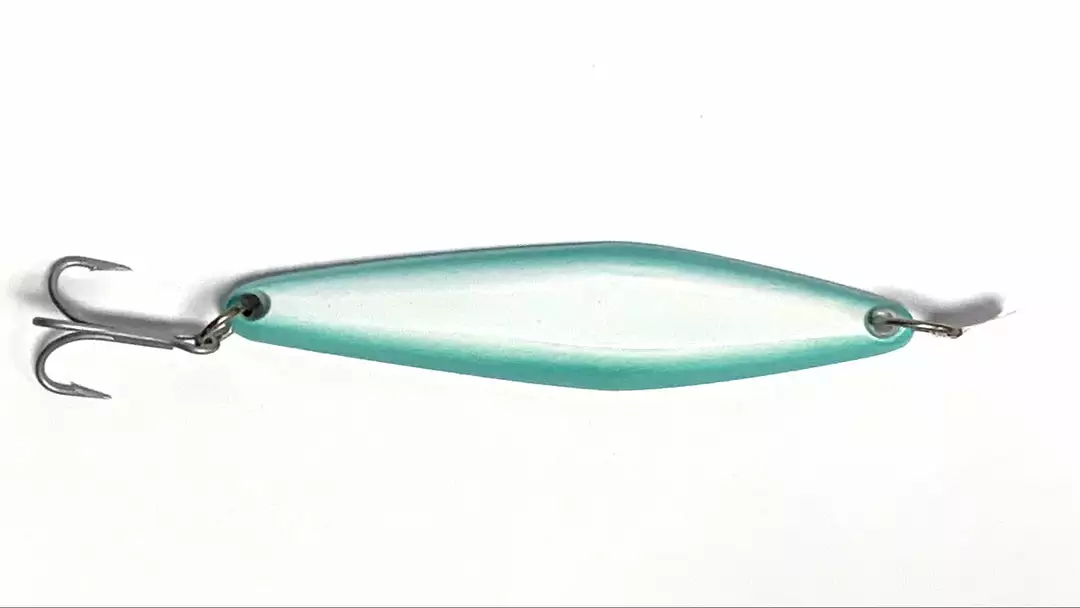 The JRI Custom Lures JRI-3 Surface Iron Jigs are the widest kicking jig in the family. An excellent swim action with a very pronounced kick out to one side. It’s during this kick out that triggers strikes from followers and non aggressive fish. Also a great casting surface iron weighing in at 3.3 ounces and 6 inches long. JRI-3 seem to be most productive on a slow retrieve however conditions will determine that, gets bit on the medium retrieve as well. JRI Custom Lures JRI-3 Surface Iron Jig is the one that the Locals always have at the ready for when they come up out of nowhere. Anything that swims or has fins loves it.