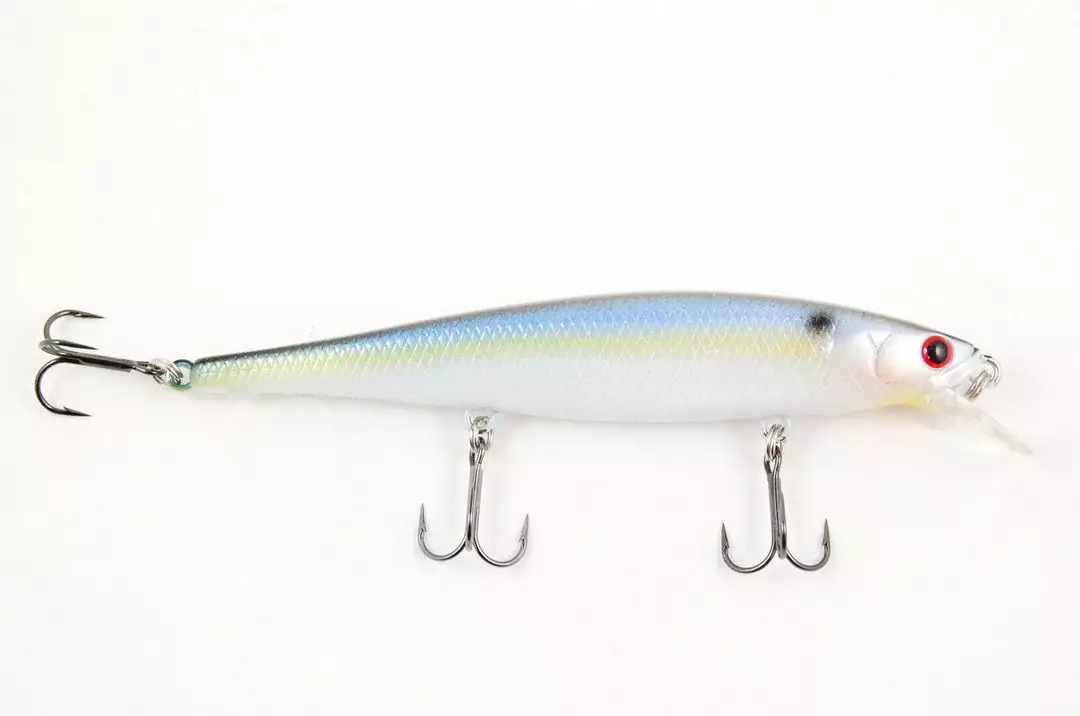 The Lucky Craft Flash Pointer 100 is a slow-sinking jerkbait designed to more effectively fish the critical 4 – 5 foot depth zone. Combining the benefits of the Pointer and Flash Minnow, this bait has great side-to-side action and slowly floats allowing it to be used in various shallow water situations. It has a tungsten weight transfer system which shifts to the butt of the bait during a cast to carry the bait an incredible distance.