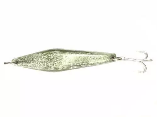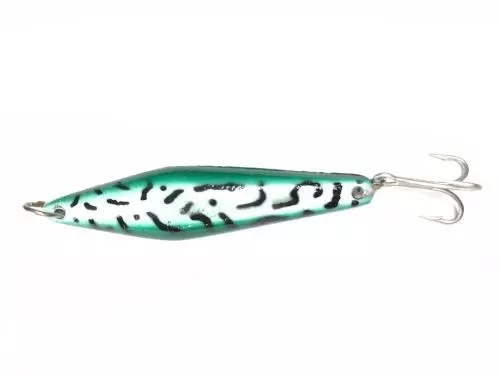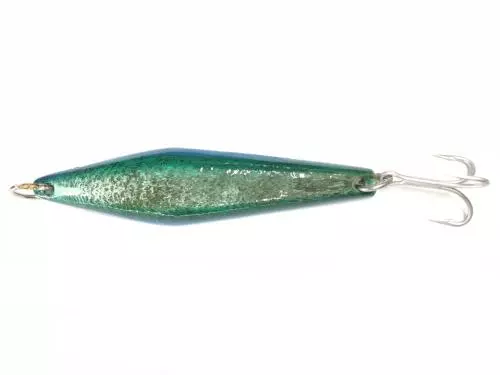The Salas O Pop surface irons feature much wider hips that provide a very wide swimming action when fishing with a slow to medium retrieve. This jig is deadly when the fish are holding in a zone and you don’t want to move it too fast through that zone. The wide hips cause this jig to have a wide kick as well. Let it sink out a little longer before you retrieve it, the wider body makes it sink a bit slower than other Salas jigs.