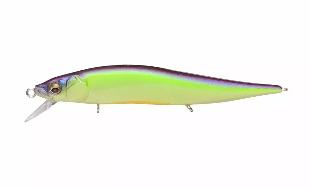 The VISION ONETEN Jr. has been carefully benchmarked against the VISION ONETEN, and has been redesigned from the ground up to improve upon the dynamic actions of the original, and expand the range of the jerkbait line. The ONETEN’s unique action has been distilled into the diminutive frame of the ONETEN Jr. Not only does it exhibit wide, erratic darts, but also demonstrates high pitch rolling and flashing during slow retrieves and wobble and roll agitation during fast retrieves. Finally, the dual-tungsten weights of the Megabass Multiway Moving Balancer System (PAT.) allow for incredible flight distance despite the lure’s small size.