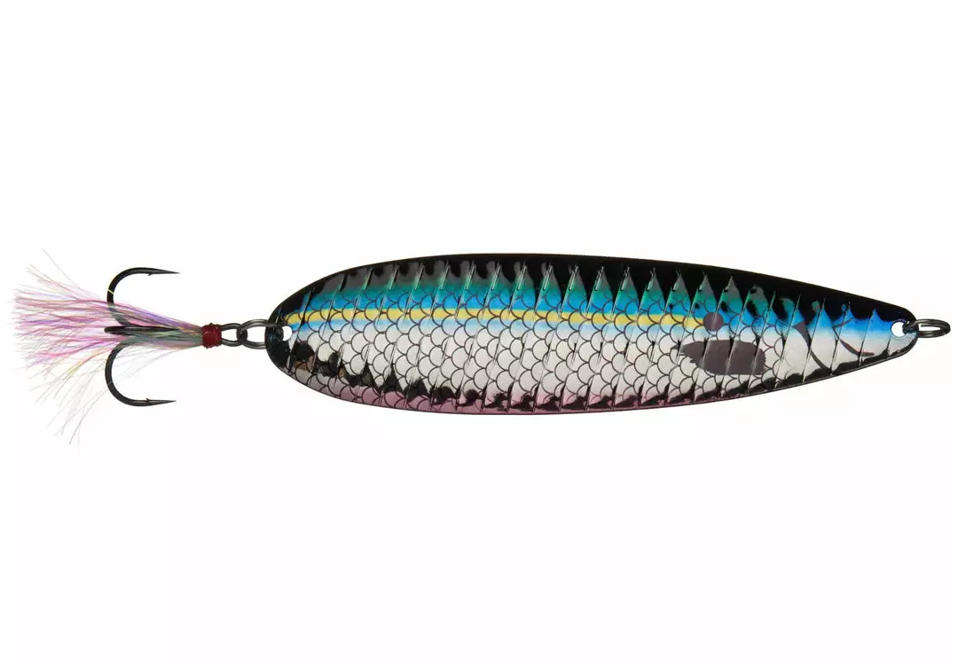 The renowned Nichols Ben Parker Mini Magnum Flutter Spoon 6.5″ is one of the hottest baits on the market today. The Spooning technique has caught fire, flutter spoons meet every need. Available in a variety of beautiful different finishes, this bait flutters perfectly, featuring quality Owner ST-36 trebles with hand-tied flashabou, Spro Power Swivels, and Worth split rings.