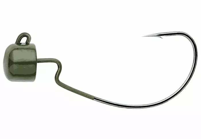 The Owner Block Head Offset Head head features an offset hook for weedless applications. Still features the same shape mushroom style head as the original Blockhead, and is ideally paired with a short stick bait. Features include a forged shank, Super Needle Point, and Black Chrome finish. Available in both Natural and Green Pumpkin colors.