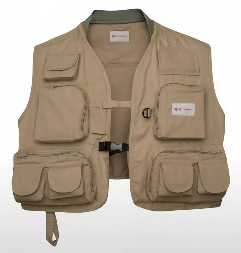 Redington Blackfoot River Vest is a classic Redington fly fishing vest with a knit collar for comfort and 9 external zip/Velcro closed external pockets.