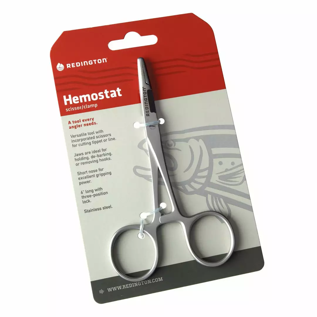 The Redington hemostat incorporates scissors for cutting tippet or line and has a three-position locking system. The strong jaws are ideal for holding, de-barbing and removing hooks.