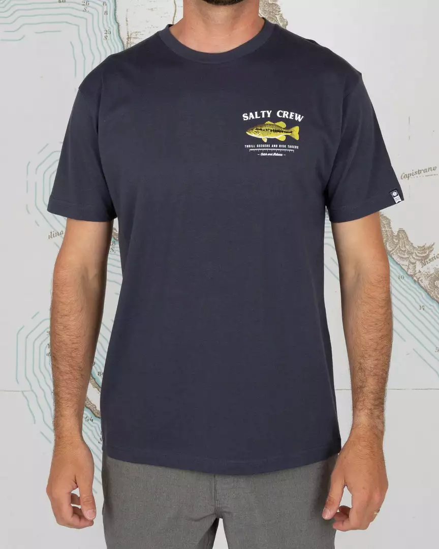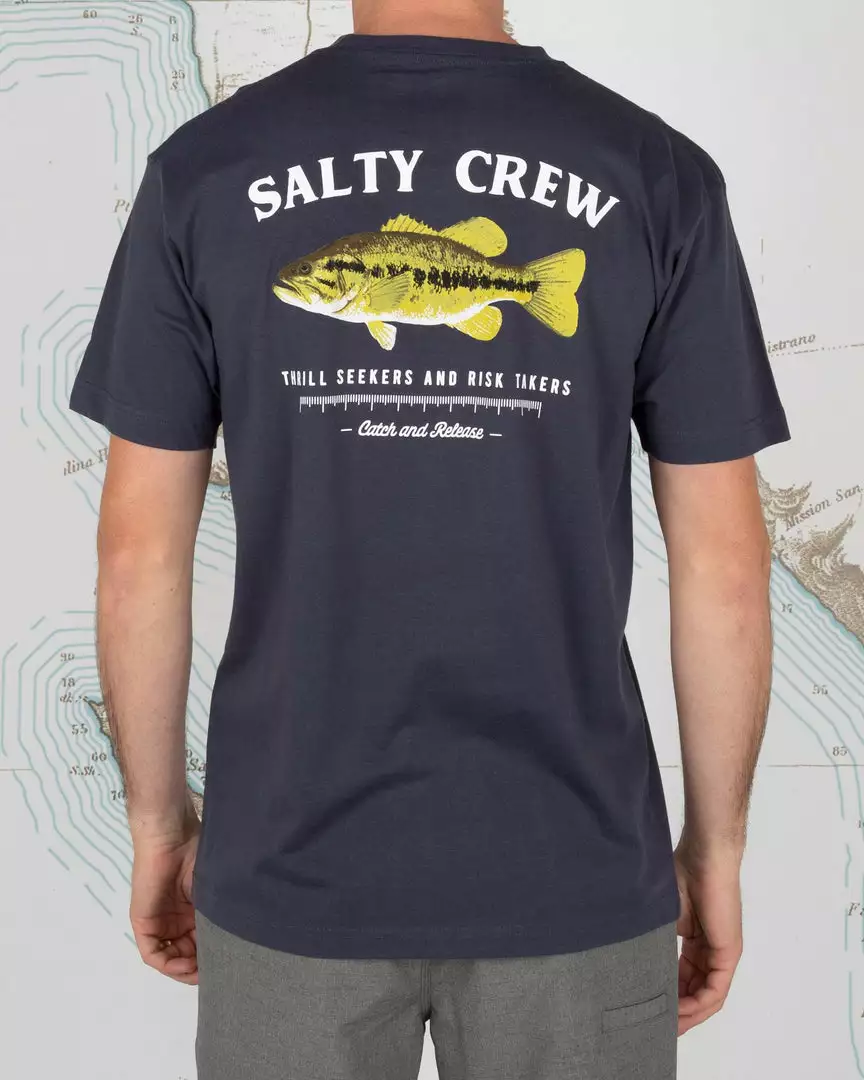 Salty Crew Bigmouth Premium Tee is a very soft premium slim fit short sleeve tee with an awesome largemouth bass design on the front and back. The 100% cotton tee is ringspun so it’s comfortable for all day wearing or on the water. The harbor blue color of the Salty Crew Bigmouth Premium Tee is very attractive and won’t show stains easily.