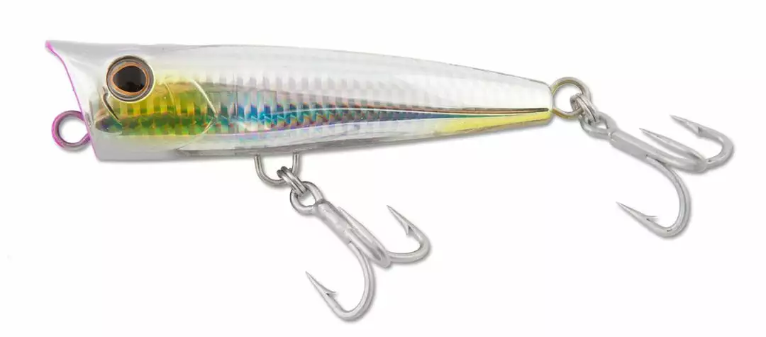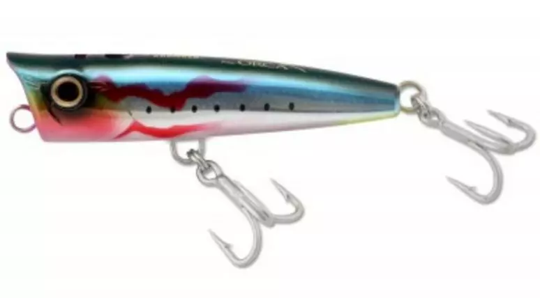 Shimano’s Pop Orca popper features a unique “Bubble Chamber” open mouth design bases on how a jet engine turns low pressure into high pressure. It also makes the Pop Orca much easier to work than conventional poppers. The additional spray is an added attraction but because the water can flow through the bait, it takes less effort to move the lure.