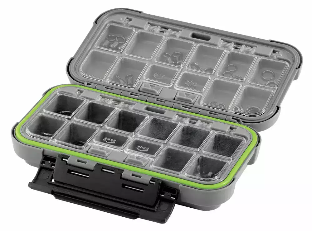 Built with heavy duty front latch that provides a waterproof seal Spro Waterproof Terminal Tackle Boxes feature an adjustable divider system that can be opened out horizontally to maximize efficiency with different shapes and styles of tackle.