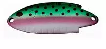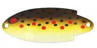 Thomas Buoyant Trout Spoons work wonderfully in mountain lakes and streams. The 1/6 and 1/4 ounce spoons are the hard to find Gold / Red metal version with the black, red & yellow accents and hammered finish that mimics the look and light flash of real scales. This color pattern is a proven best performer and best seller for stream trout fishing in the Sierra Nevada Mountains and Foothills of California. It works season after season in that region. An excellent choice in areas where live bait is not permitted.
