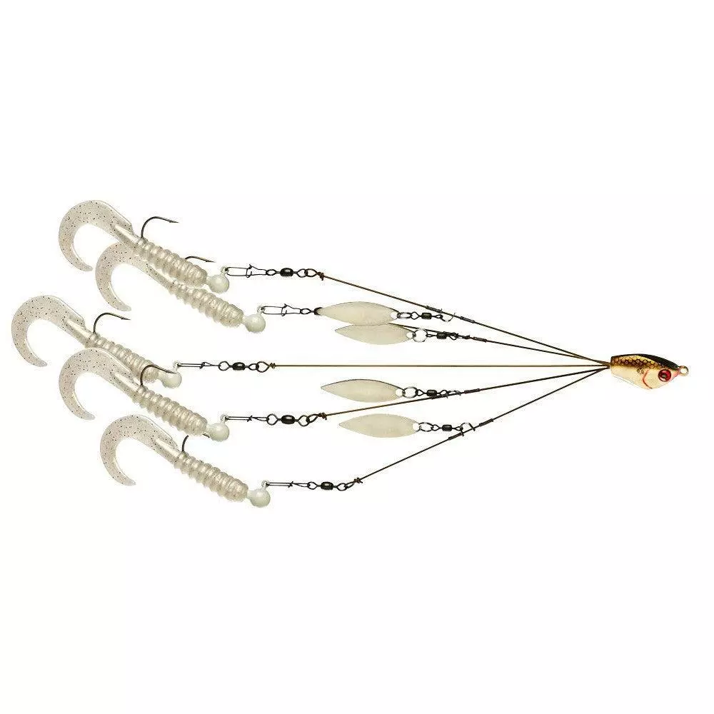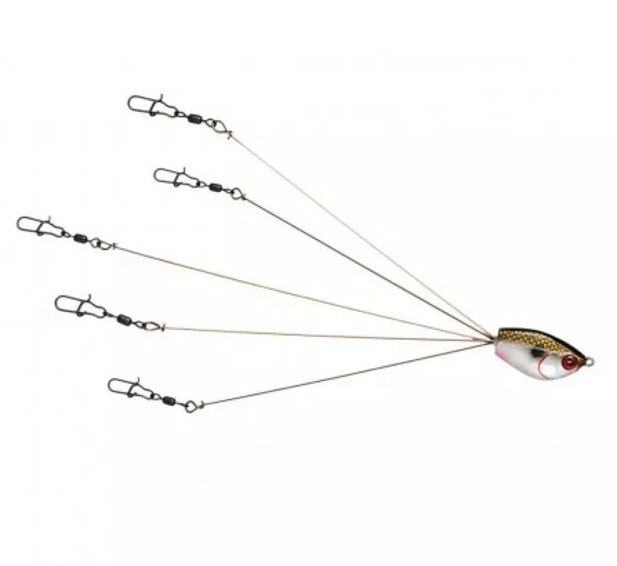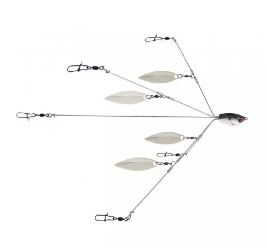 The Yum Yumbrella Umbrella Rigs is the most advanced multi-lure on the planet. This 7″ Multi-Swimming 5-wire rig is part of the Bait School Technology phenomenon. Rig it with 5 jig heads and swimbaits to mimic a realistic school of baitfish.