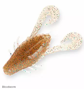 This miniature crustacean imitation is perfectly suited for any application where fresh- or saltwater gamefish are feeding on small crabs, crayfish, sand fleas, ghost shrimp, or other crustaceans. The uniquely shaped body can be rigged in a variety of manners, and twin u-tail claws produce attention-getting action on both fast and slow retrieves.